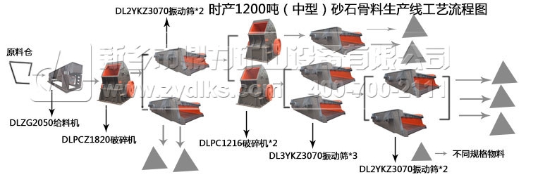 物料由原料倉進入振動給料機物料受力均勻,勻速進入破碎機內腔進行破碎作用,破碎物料經過兩臺振動篩進行篩分,出一部分成品料,一部分破碎后物料再進入二級破碎機進行再次破碎加工,獲得符合物料顆粒粒度的成品料。