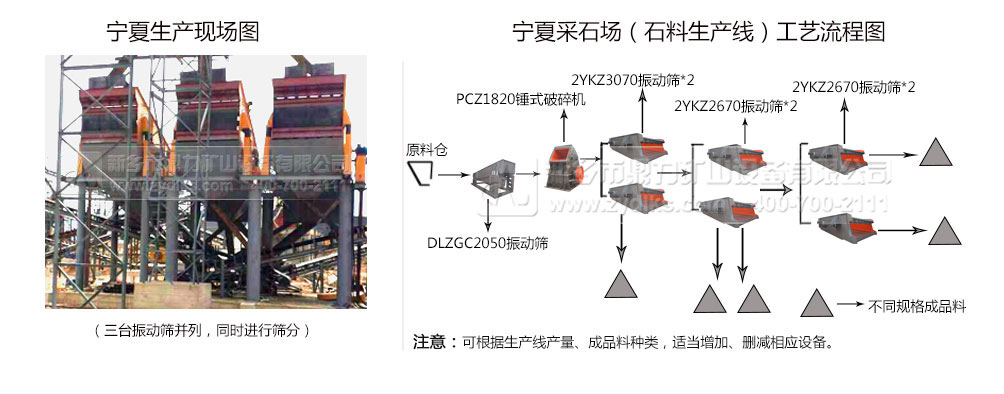 從生產(chǎn)現(xiàn)場圖可以看到,三臺振動篩并駕齊驅,同時進行篩分,可以快速進行破碎物料粒度的篩分,從而形成短時間、率、產(chǎn)量高的大中型砂石骨料生產(chǎn)線。