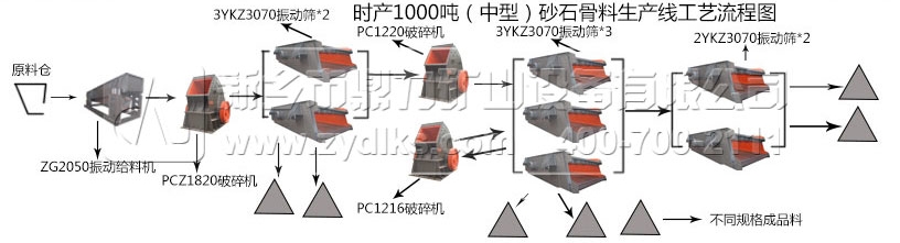 由一臺(tái)振動(dòng)給料機(jī)均勻給料,進(jìn)入破碎設(shè)備進(jìn)行物料破碎,破碎物料接著進(jìn)入振動(dòng)篩進(jìn)行篩分,不滿足粒度物料直接進(jìn)入下破碎設(shè)備進(jìn)行再次破碎�?梢愿鶕�(jù)成品料顆粒粒度的需求增加破碎設(shè)備和篩網(wǎng)不同孔徑的振動(dòng)篩進(jìn)行砂石生產(chǎn)線砂石物料的生產(chǎn)�?梢钥闯龃藯l生產(chǎn)線生產(chǎn)物料為顆粒比較細(xì)小砂石料。