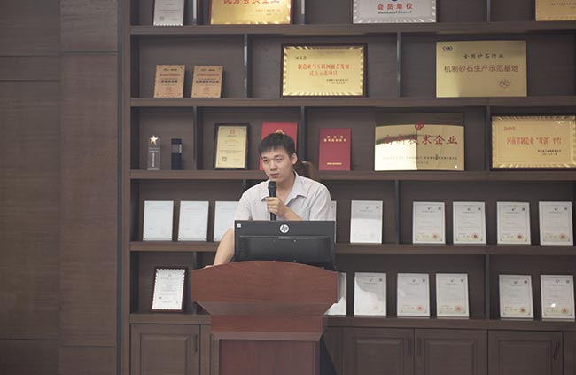 發(fā)布會(huì)上,河南中譽(yù)鼎力智能裝備有限公司技術(shù)部長(zhǎng)劉海淘先后為大家介紹了DLPCZ、DLPC系列錘式破碎機(jī)、DL2YKZ3070振動(dòng)篩密封鋼構(gòu)、給料+破碎整體鋼構(gòu)、移動(dòng)式破碎站、干法制砂樓、選粉機(jī)等公司新上市設(shè)備,對(duì)設(shè)備的特點(diǎn)、分類、組成及安裝維護(hù)等內(nèi)容進(jìn)行了詳細(xì)的講解與說(shuō)明,讓各地服務(wù)銷售代表對(duì)公司新上市設(shè)備及其優(yōu)勢(shì)有了更深層次的了解和認(rèn)識(shí),便于今后營(yíng)銷服務(wù)工作的開(kāi)展。