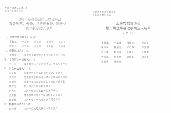 衛(wèi)輝市慈善協(xié)會(huì),是由熱心慈善事業(yè)的中公民、依法成立的企事業(yè)單位、社會(huì)團(tuán)體、民辦非企業(yè)單位及其它社會(huì)組織自愿參加的市性非營(yíng)利公益慈善社會(huì)組織。理事會(huì)理事主要由愛心企業(yè)、社會(huì)組織的代表和社會(huì)人士、慈善志愿者構(gòu)成,經(jīng)會(huì)員代表大會(huì)選舉產(chǎn)生;會(huì)長(zhǎng)、副會(huì)長(zhǎng)、秘書長(zhǎng)、常務(wù)理事由理事會(huì)選舉產(chǎn)生。