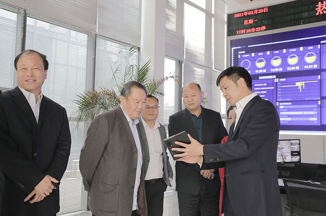 張鐵崗院士一行先來到由中譽鼎力投資建設的多位一體循環(huán)建材產(chǎn)業(yè)園項目實踐基地——衛(wèi)輝市藍天環(huán)保材料有限公司“四位一體”大型建材項目調(diào)研,深入了解建材生產(chǎn)智能管理模式。