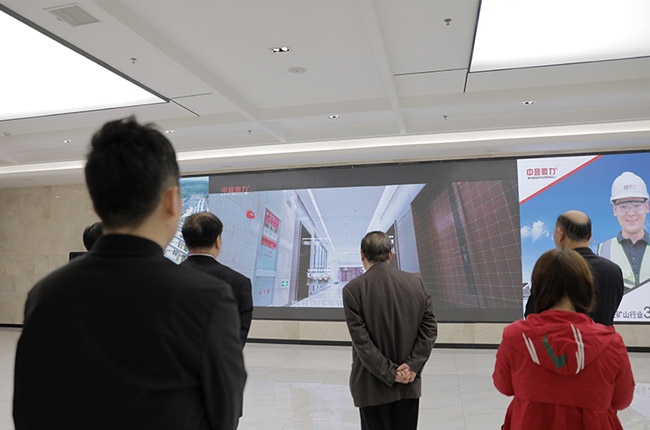 隨后,調(diào)研團成員走進河南中譽鼎力智能裝備有限公司,先后參觀了公司文化墻、礦山管理云數(shù)據(jù)中心、智能化展示中心等,對中譽鼎力主營業(yè)務、發(fā)展歷程、資質(zhì)榮譽等情況有了進一步的了解。